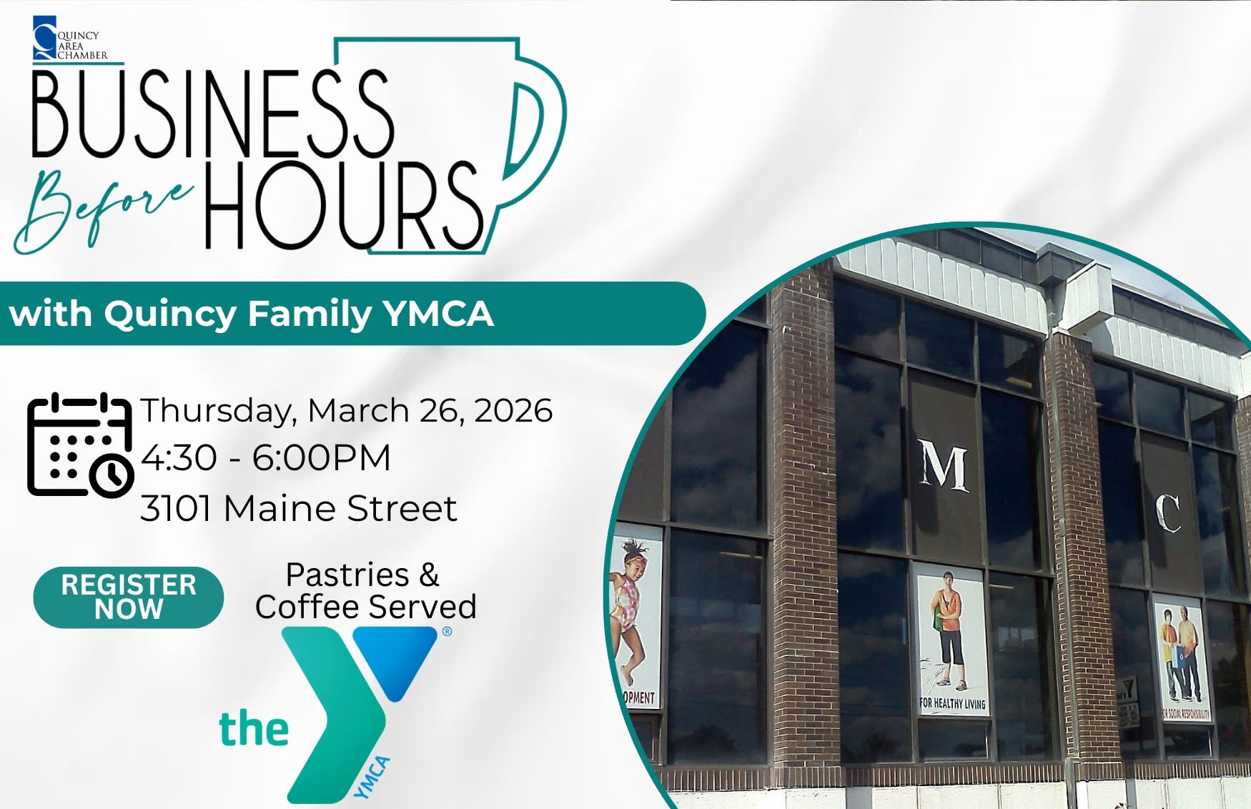 Come join us for the Business Before Hours at the Quincy Family YMCA . Free to attend for members. Gather your business cards and join us for networking, light breakfast items, and prizes. Reservations strongly suggested for all 2026 Business Before Hours!
