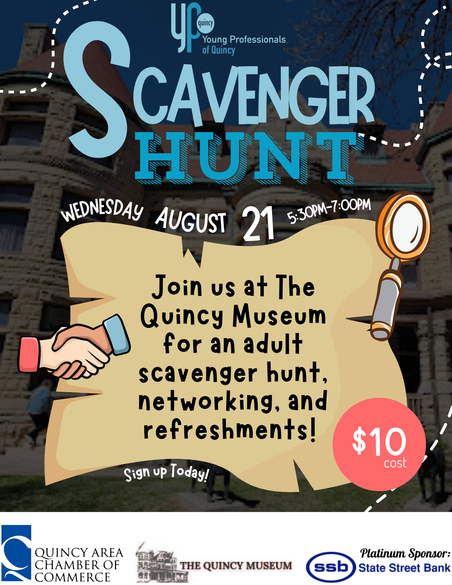 Hello Young Professionals! Join us at The Quincy Museum for an exciting evening: adult scavenger hunt, networking, and refreshments.