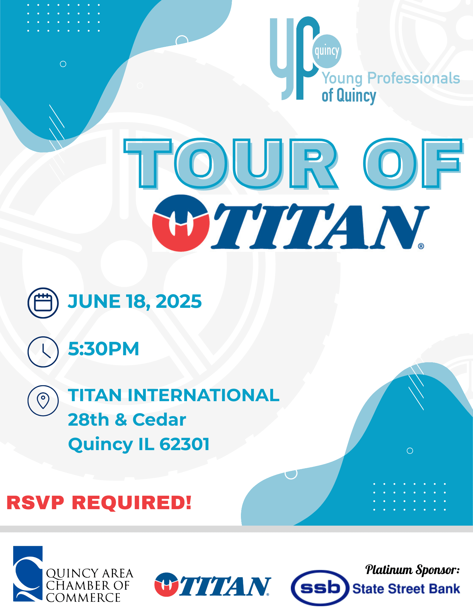 Hey Young Professionals! Join us on an exclusive behind-the-scenes Tour of Titan International. Get a closer look at one of Quincy’s top manufacturers and see innovation in action!